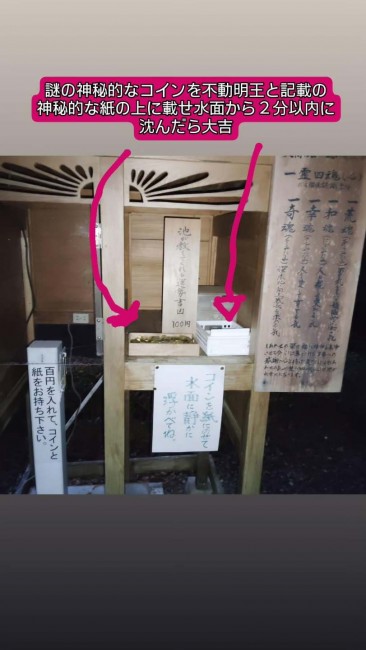 謎のコインと不動明王と書かれた神秘的な紙をとり、